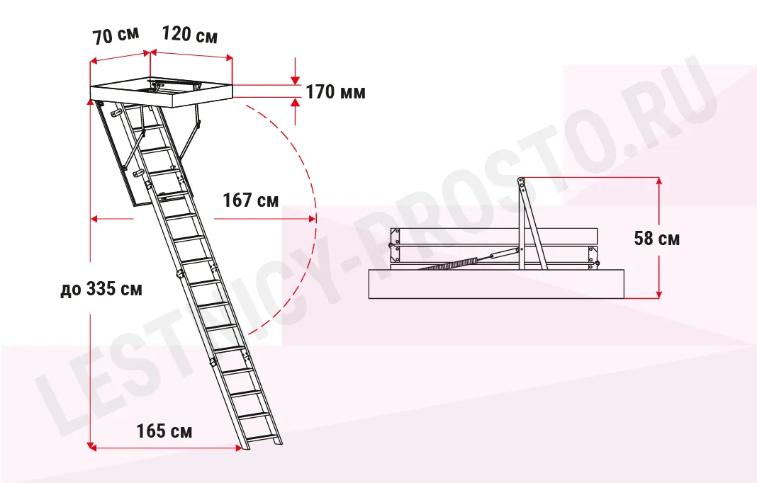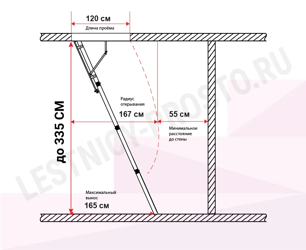 Высота лестницы до 3350 мм