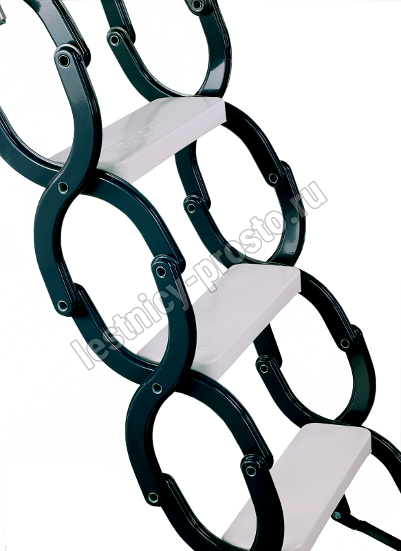 Ножничная лестница ELEGANCE износоустойчива, оснащена надежными металлическими защелками.