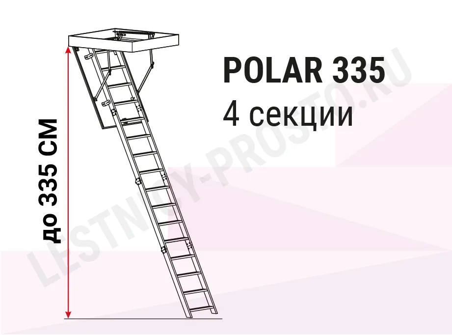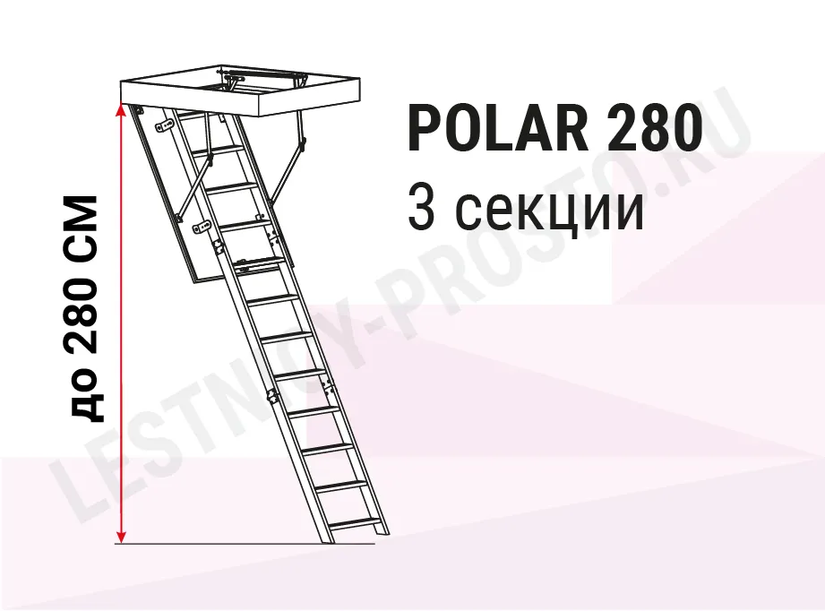 Максимально утеплённая чердачная лестница из массива сосны высокого качества. Складная, трёхсекционная (до 280 см) или четырехсекционная (до 335 см).