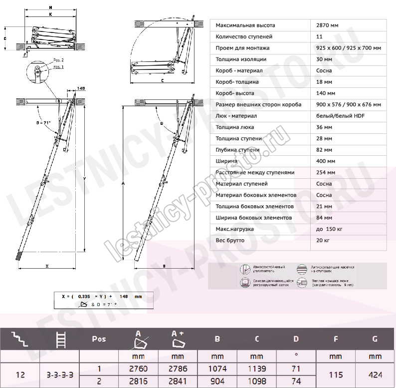 Чердачная складная лестница PROF 36 MINI, 70×92.5