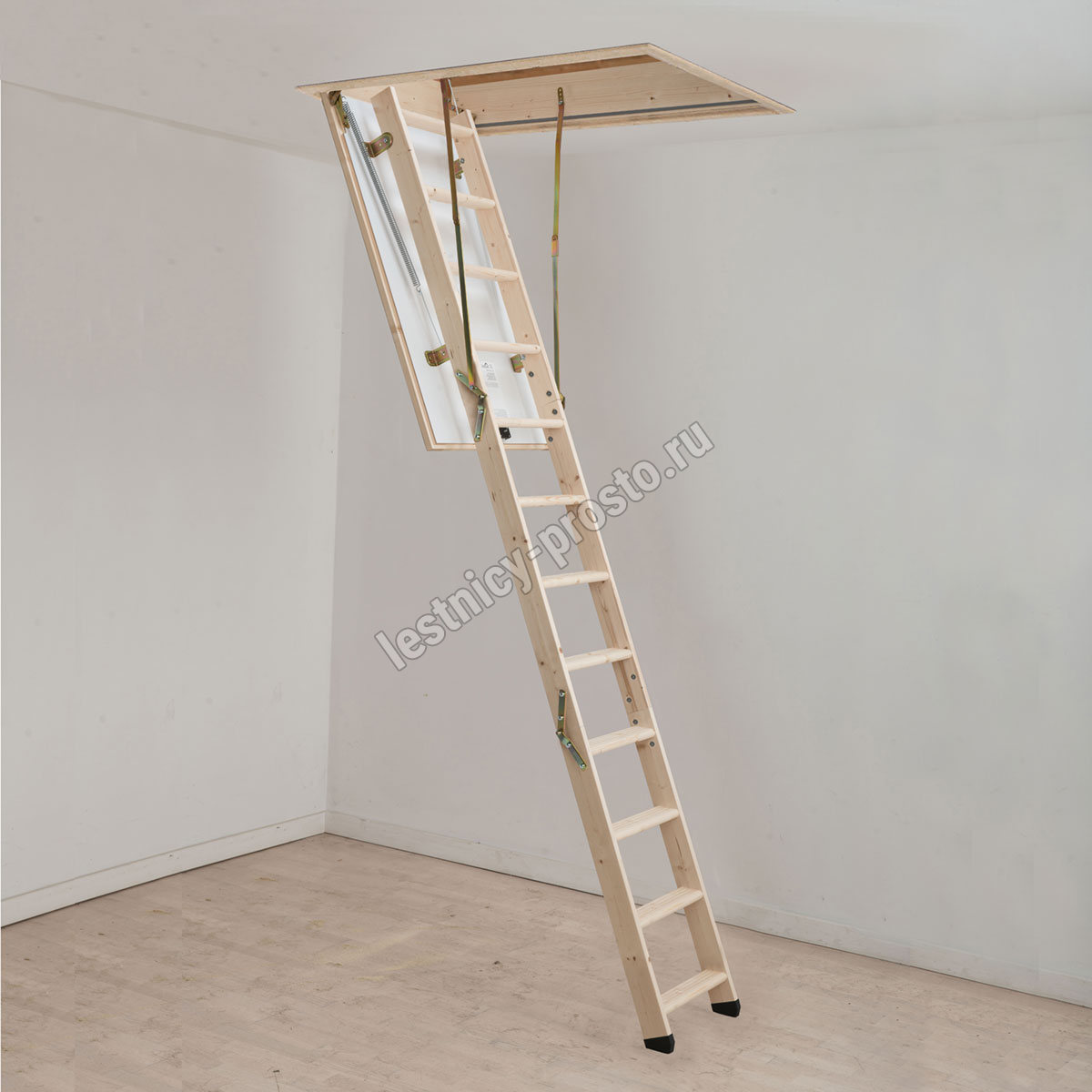 PROF 36 - трехсекционная утепленная лестница из скандинавской медленнорастущей ели, отличающейся повышенной прочностью, ступени из сосны, имеют антискользящие насечки.
