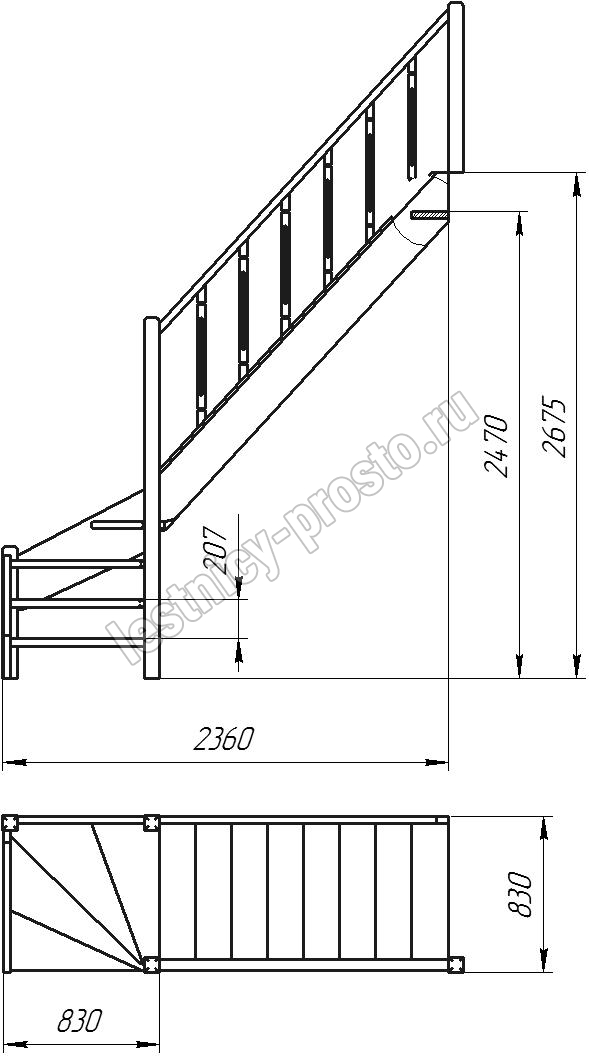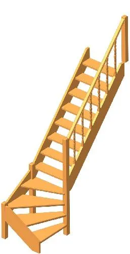 Деревянная межэтажная лестница ЛЕС-07 2470-2675 проем 2360-830, Сосна