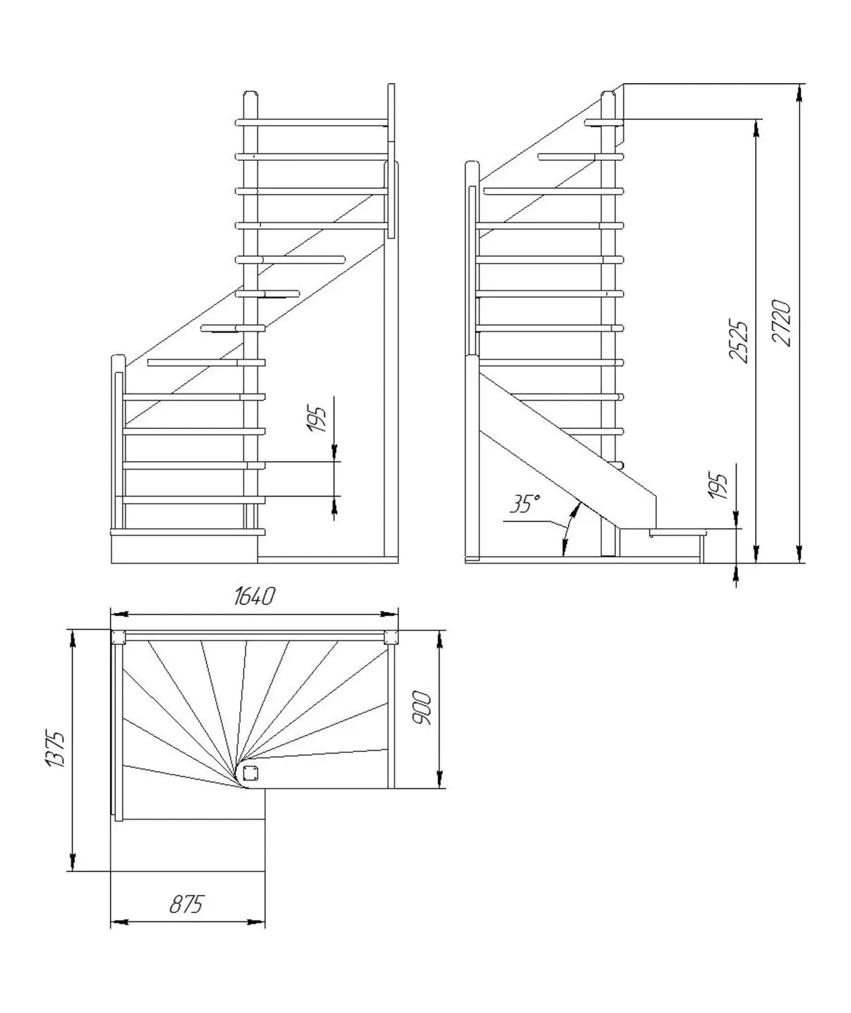 Лестница выполнена из древесины хвойных пород 8 % влажности.