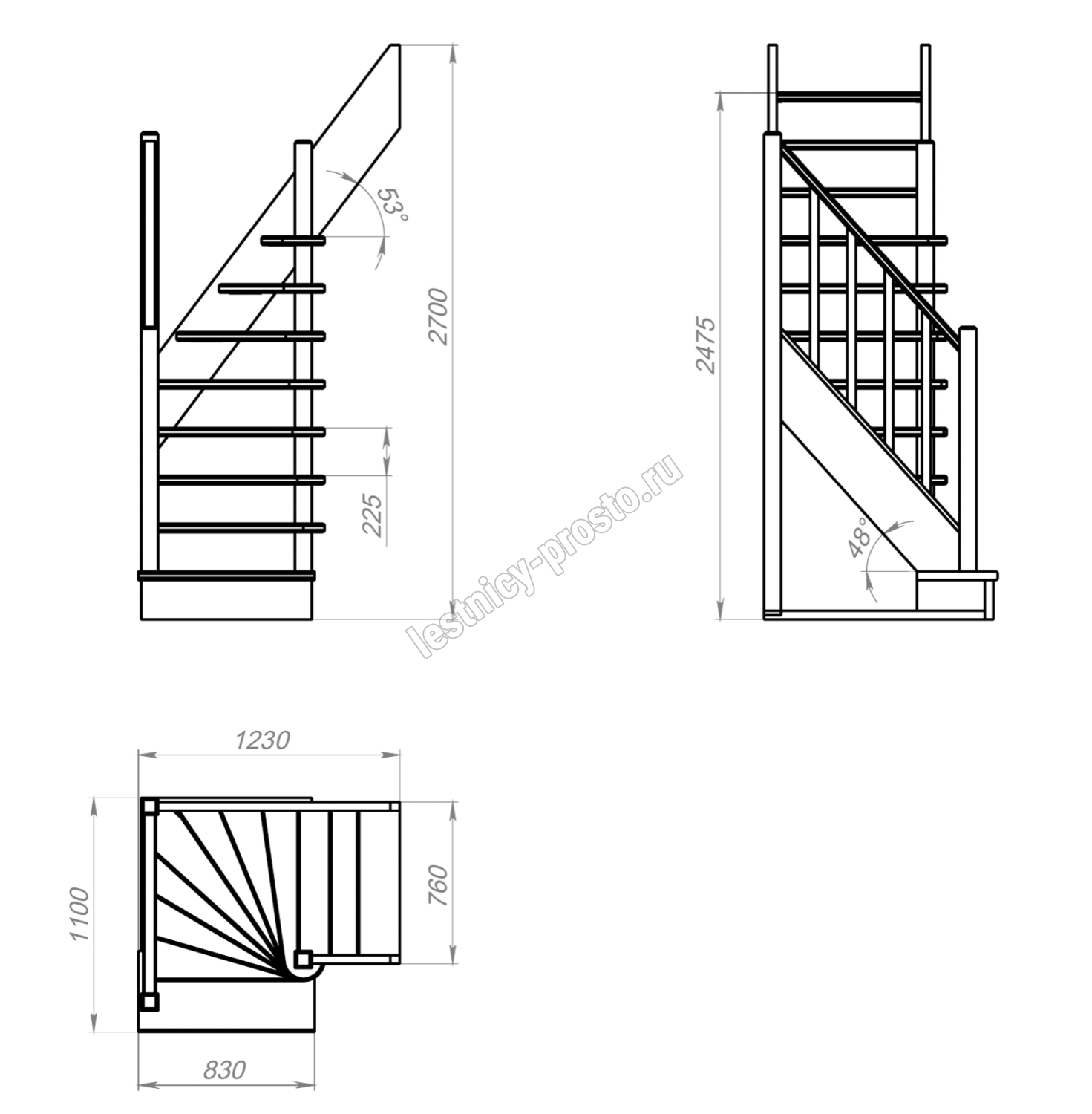 Высота лестницы 2475 - 2700 мм