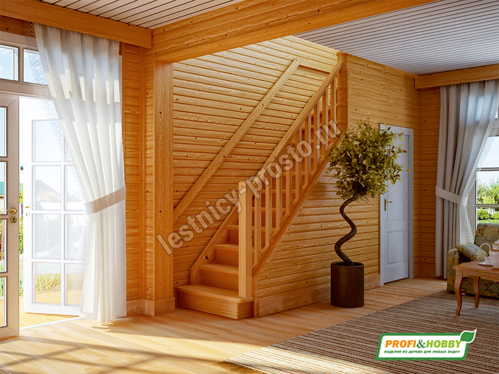 Комфортная малогабаритная лестница с подступёнками. Незаменима в помещениях, где необходимо сэкономить пространство.