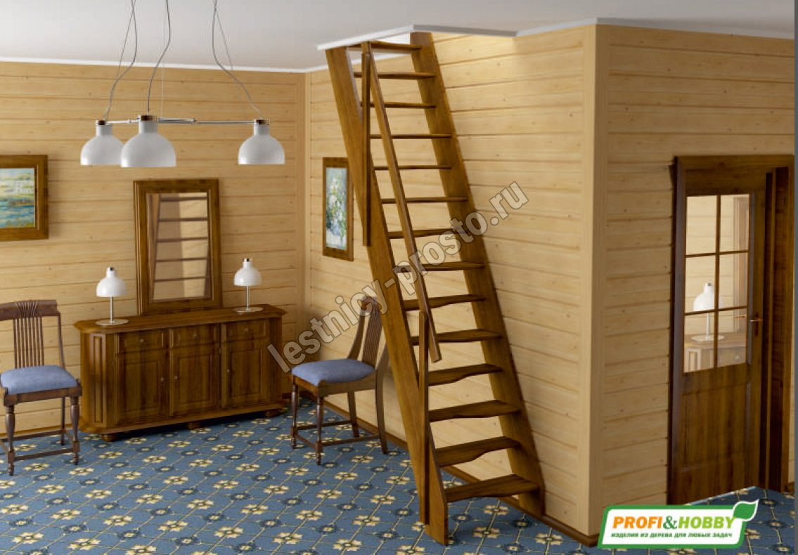 Ступени и поручень лестницы изготовлены из бука, остальные элементы из сосны.