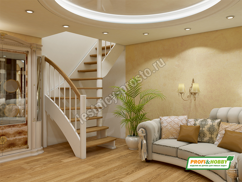 Ступени и поручень лестницы изготовлены из дуба, остальные элементы из сосны.