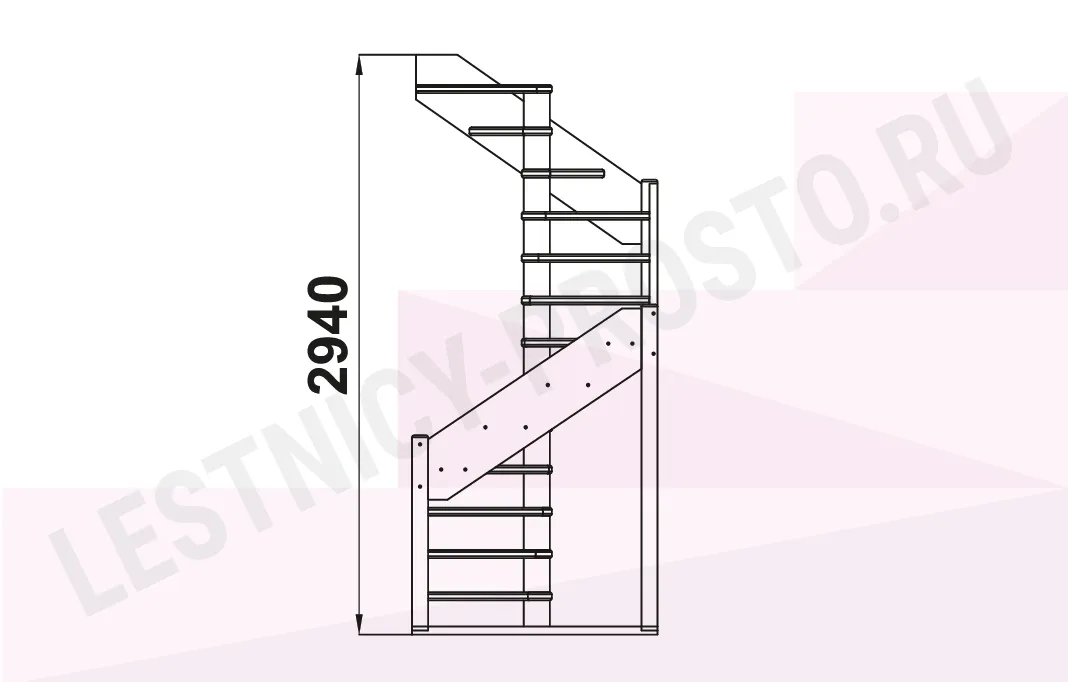 Схема лестницы ЛС-1.2хм с поворотом налево