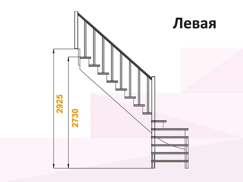 Лестница из сосны К-001м/1 под покраску с подступёнками