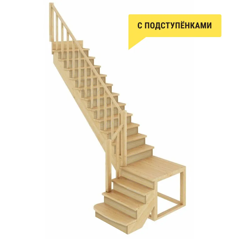 Лестница из сосны К-002М/1 с подступёнками под покраску