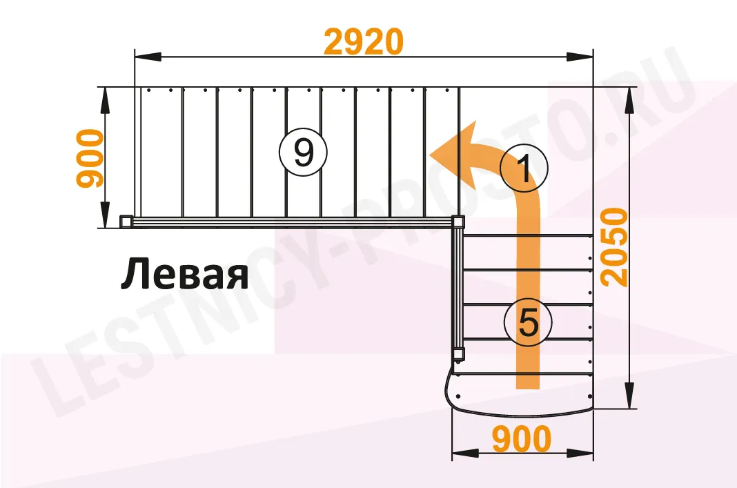 Базовый комплект включает в себя деревянные элементы лестницы и ограждения без какого-либо покрытия.