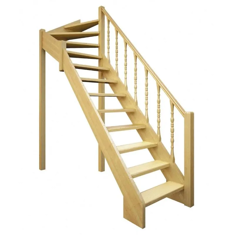 Базовый комплект включает в себя деревянные элементы лестницы с подступёнками и ограждение без какого-либо покрытия.