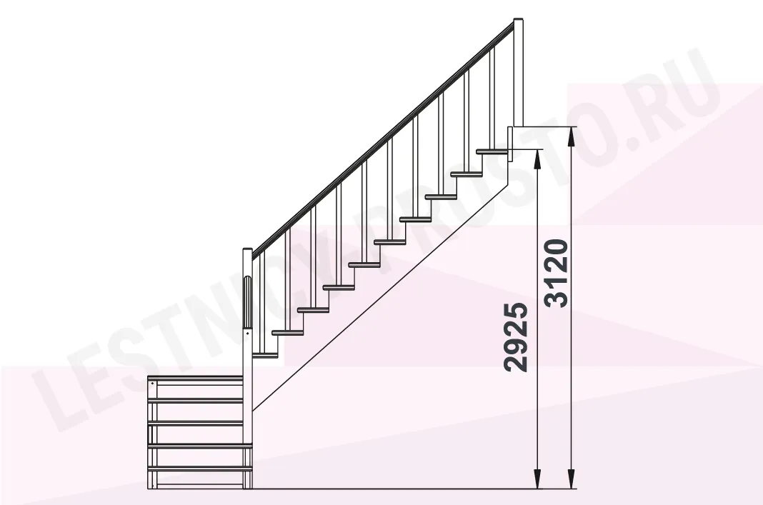 Лестница дополнительно может быть укомплектована подступенками из сосны или ясеня (покупаются отдельно) Базовый комплект включает в себя деревянные элементы лестницы и ограждения без какого-либо покрытия.