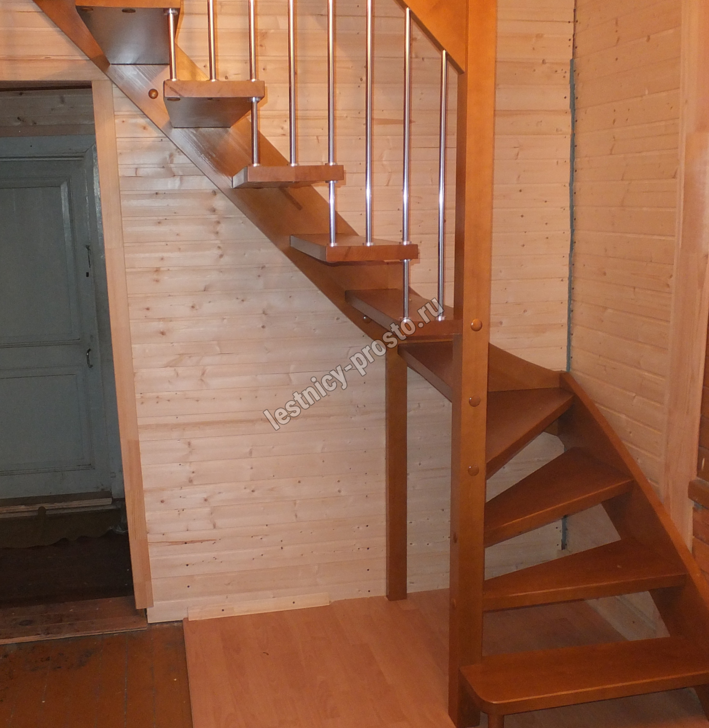 возможна комбинированная лестница: из сосны (ступени бук, ясень, дуб);