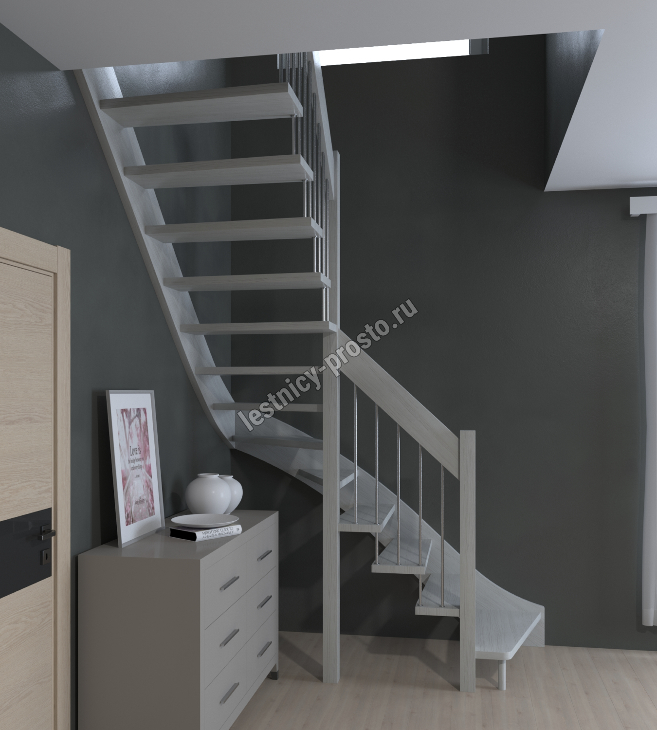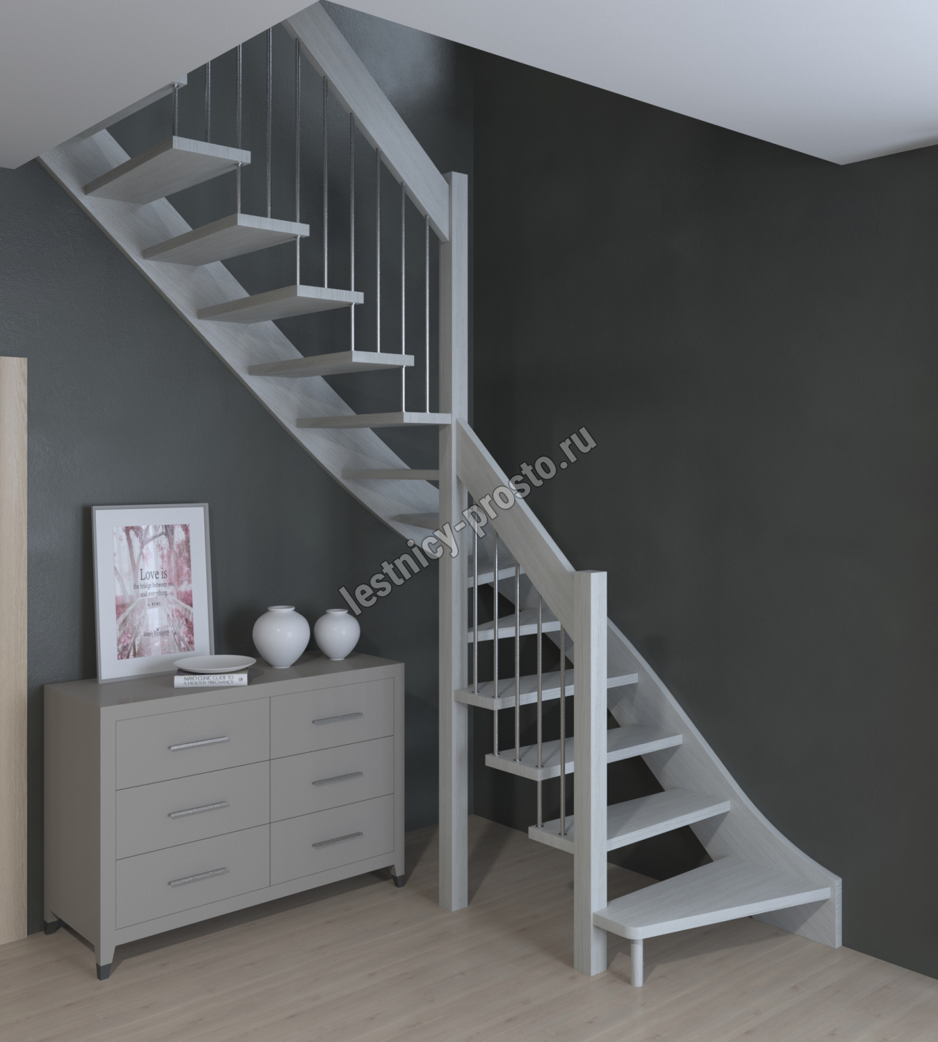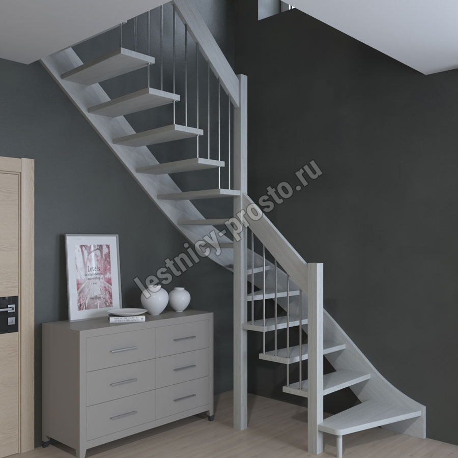 Лестница Prosto Console г-образная забежная сосна, h260 см