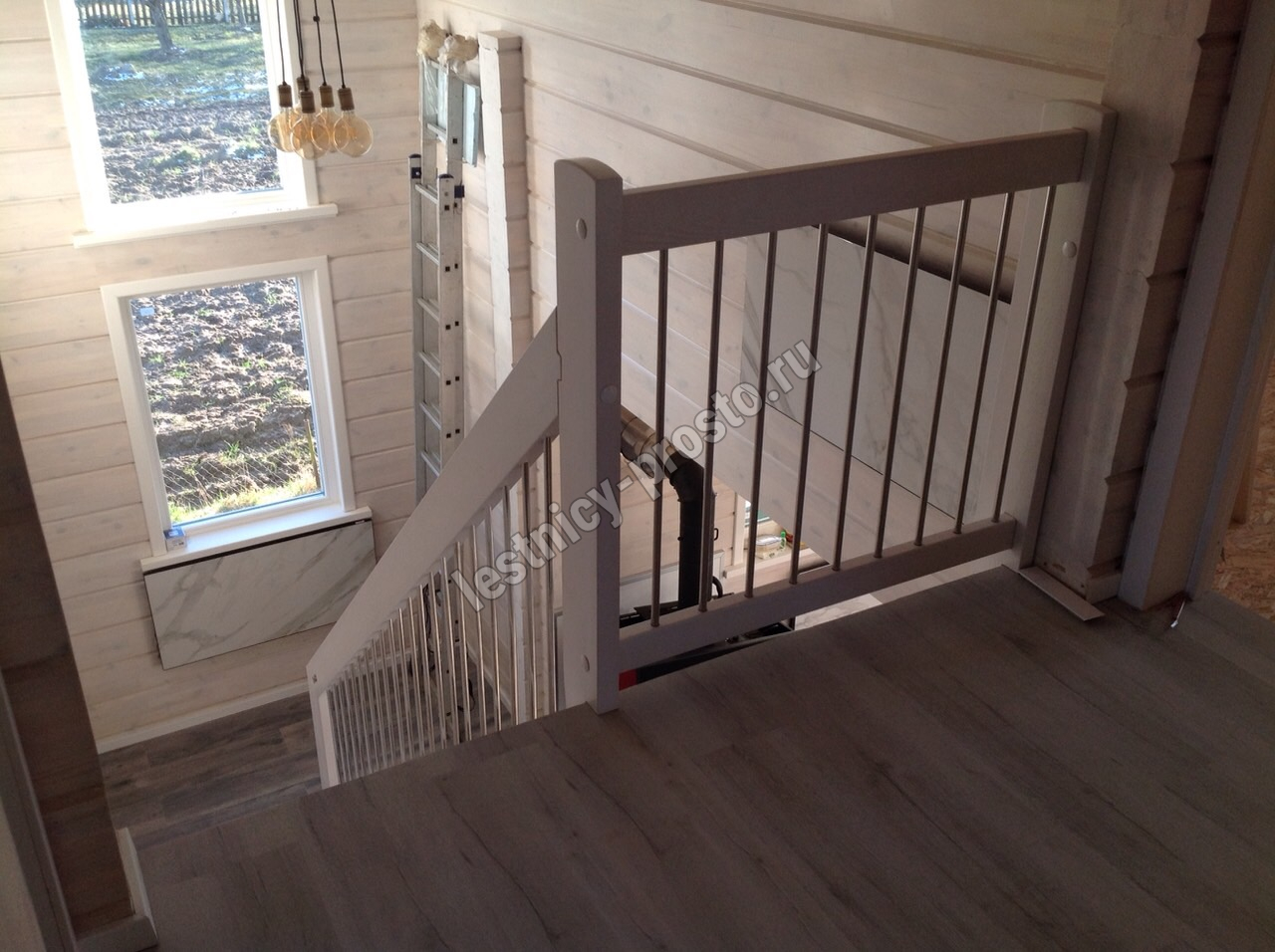 Надёжная современная лестница выполнена по немецкой технологии. Стоимость указана для лестницы с ограждением (с одной стороны); Поставляется в разобранном виде, в комплекте необходимый крепёж; Лестницу можно собрать самостоятельно; Так же, вы можете заказать услугу монтажа нашими специалистами; 4 вида породы дерева для изготовления лестницы: сосна, бук, ясень, дуб; возможна комбинированная лестница: из сосны (ступени бук, ясень, дуб); Деревянные элементы без какого-либо покрытия, отшлифованы, готовы к покраске. За дополнительную плату, вы можете изменить любые параметры, а именно: увеличить глубину ступени; увеличить ширину марша до 900 мм. и выше; заказать подступенки к лестнице; заказать отделку перекрытия (между 1-м и 2-м этажами); изготовить дополнительный промежуточный марш; заказать ограждение 2-го этажа; покраска в любой цвет или несколько цветов или покрытие защитными средствами; дополнение балясины из нержавеющей стали деревянными элементами; покраска балясин из нержавеющей стали порошковой краской в цвет RAL.