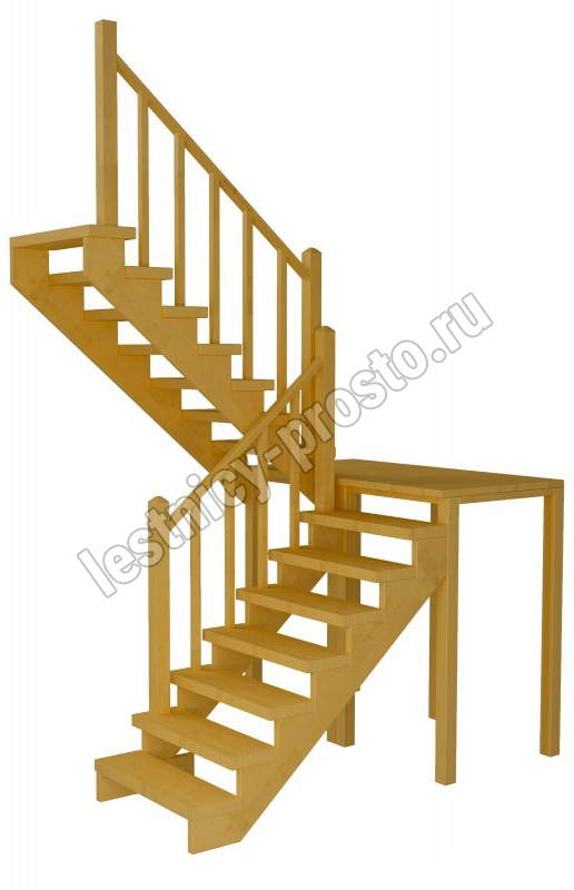 Классическая модель поворотной лестницы раскрывает всю природную красоту натуральных материалов. У лестницы комфортная высота шага, удобный широкий марш и угол подъема. Лестница изготавливается под заказ. Возможны варианты подходящие под разные размеры проёма. Базовое ограждение можно заменить на кованое или точеное. В дополнение можно приобрести бортики, подступени, или мини-подступени. Первую ступень можно заменить на пригласительную - лекальную. Стоимость указана для лестницы без какого-либо покрытия.