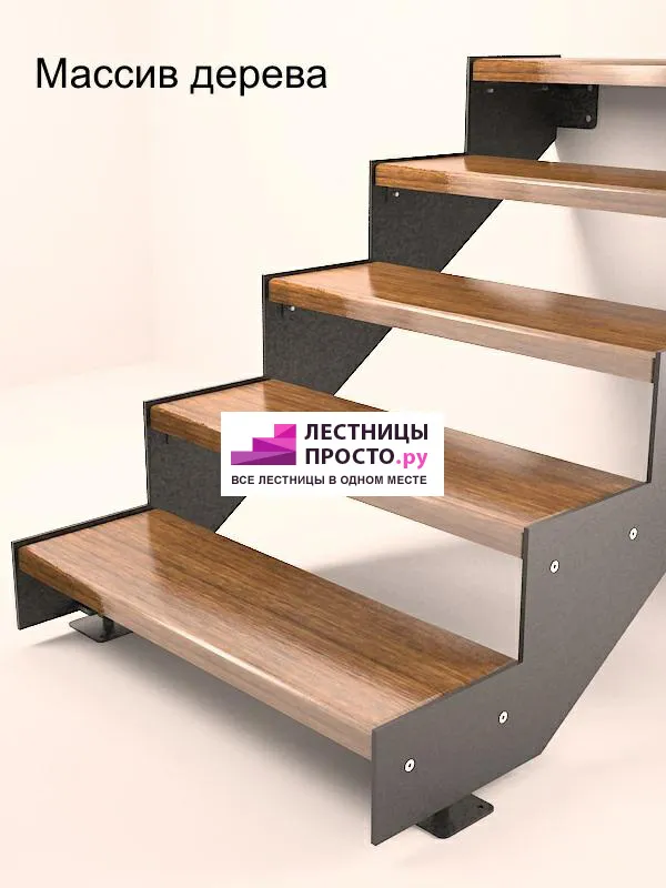 Покрытие порошковое, очень прочное и долговечное. Все детали каркаса крепятся с помощью болтов, благодаря чему Вы можете собрать каркас самостоятельно без применения сварки. В зависимости от ширины лестницы, каркас состоит из двух (ширина до 1 метра) или трех (ширина до 2 метров) опорных балок (тетив).