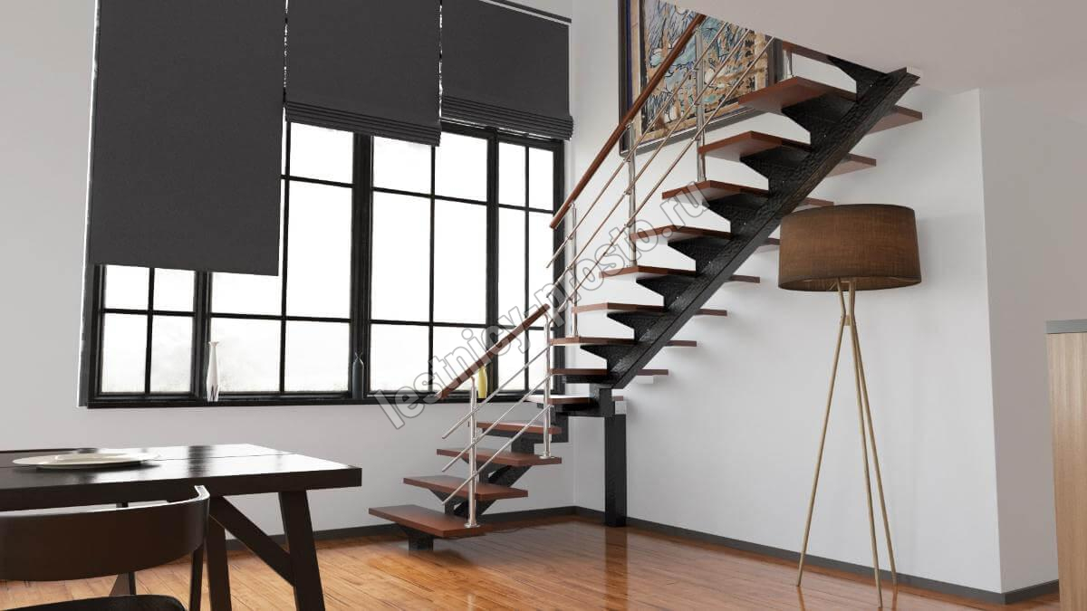 Лестница PROSTO MONO Г-образная h315 см, ступени бук