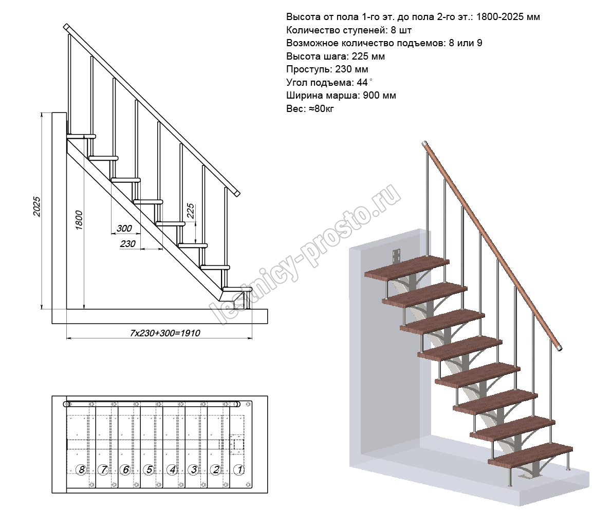 Высота лестницы 1800 - 2025 мм
