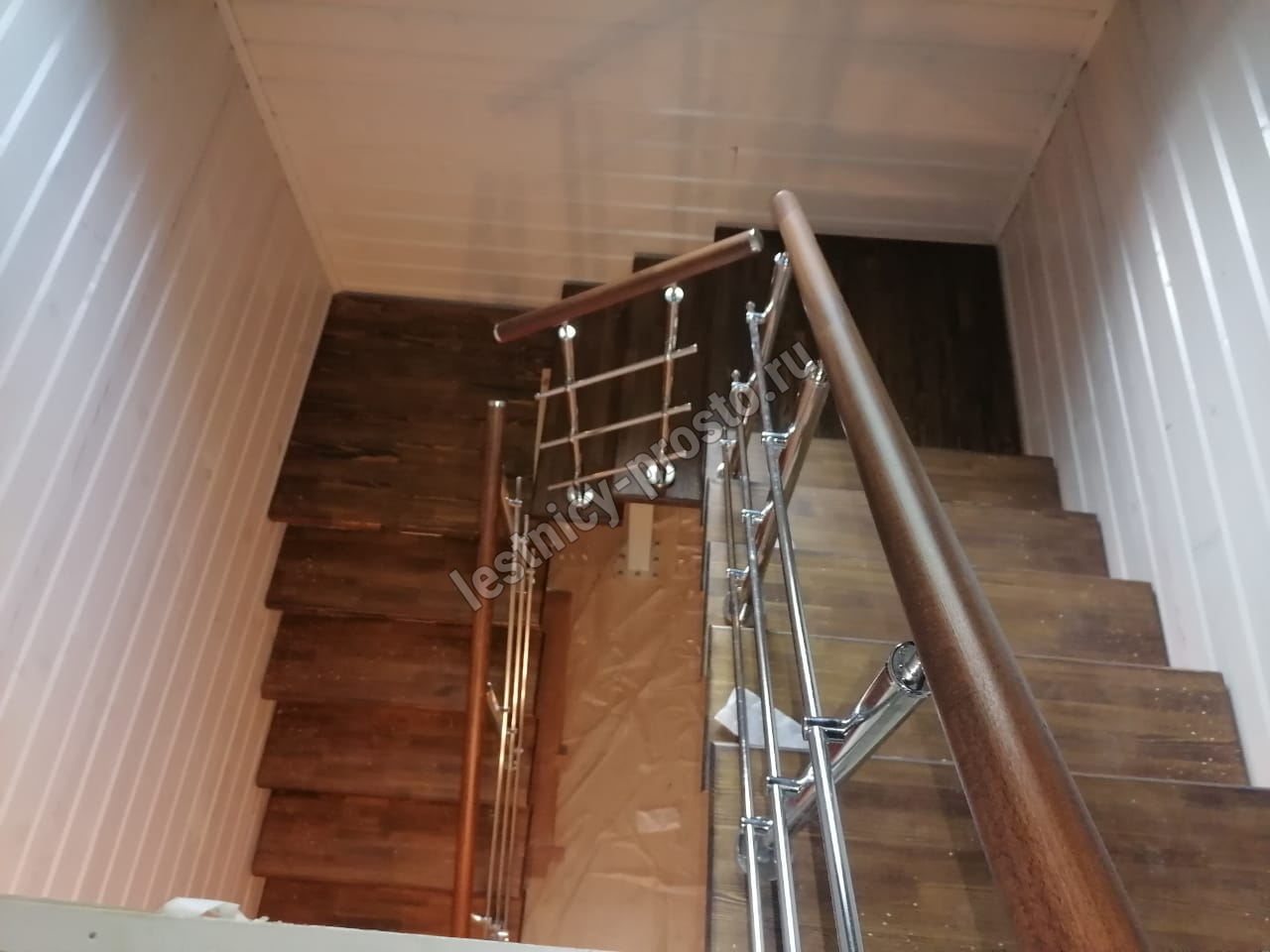 Ступени лестницы выполнены из лиственницы без какого-либо покрытия.