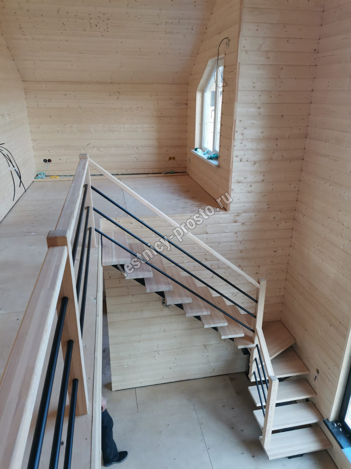 Лестница PROSTO MONO STEP TRINITY г-образная забежная, ступени лиственница с ограждением