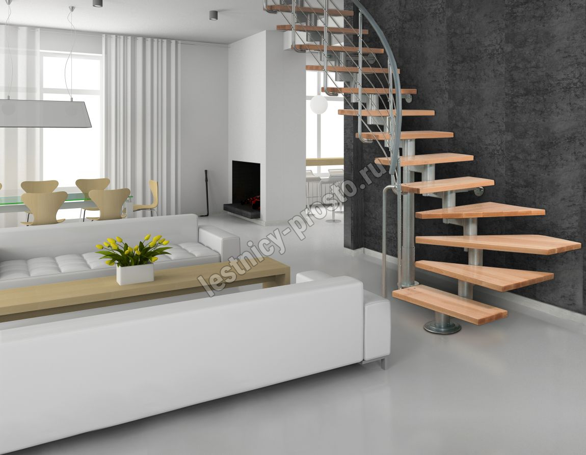Модульная лестница DIXI PLUS серебро, светлая ольха