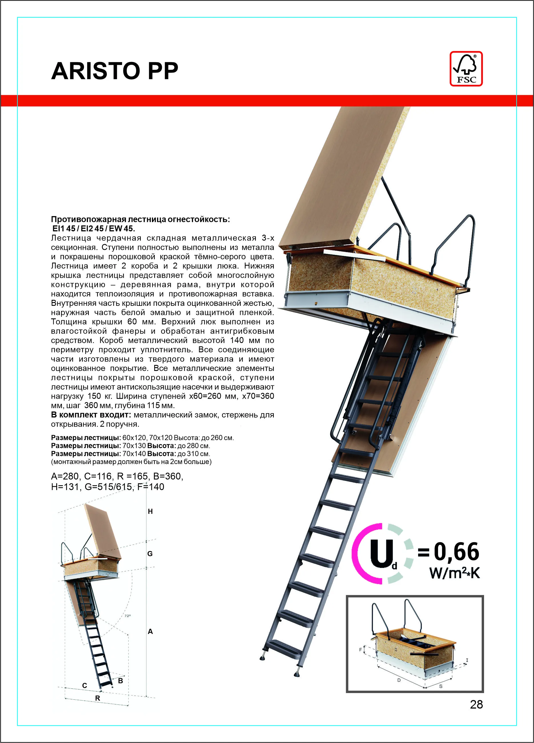 Высота лестницы 1800 - 2640 (10 ступеней) мм