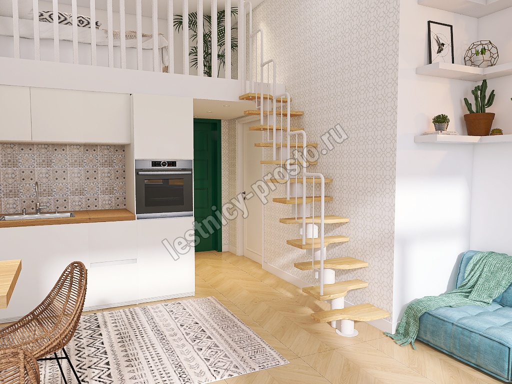 Лестница Prosto Urban White гусиный шаг 600 мм, h198-288 см (11 ступеней), бук