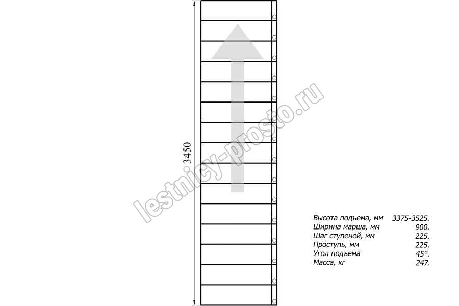 Модульная лестница Стандарт 3375-3525, Серый, Бук, Крашеная