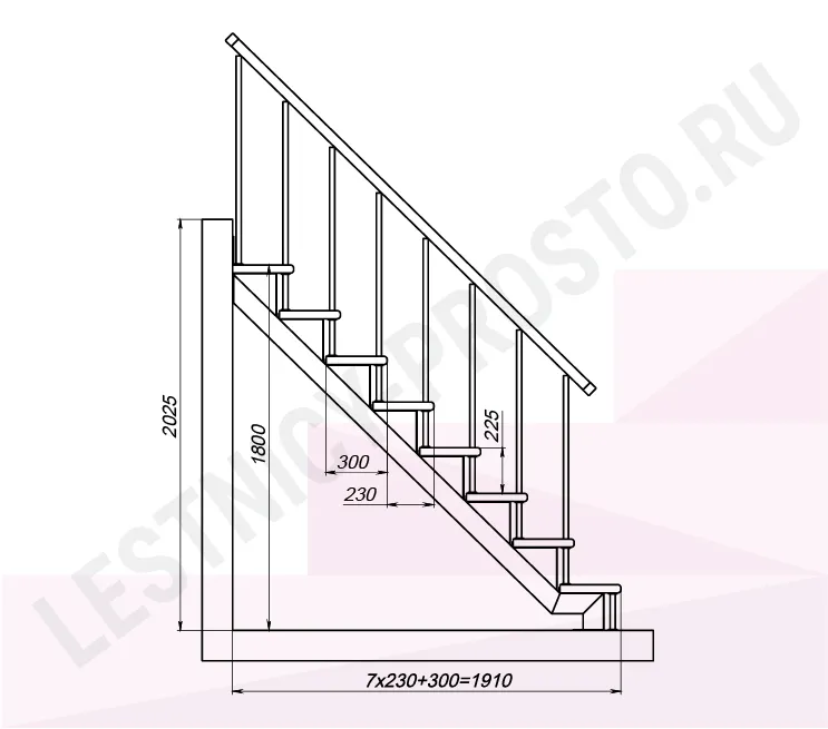 Лестница PROSTO MONO прямая, h202.5 см, ступени хвоя