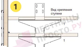 При заказе вы можете выбрать любой вид крепления ступеней из показанных ниже в блоке "Чертежи и схемы" (просто оформите заказ, мы позвоним вам для согласования заказа и спросим номер необходимого крепления).
