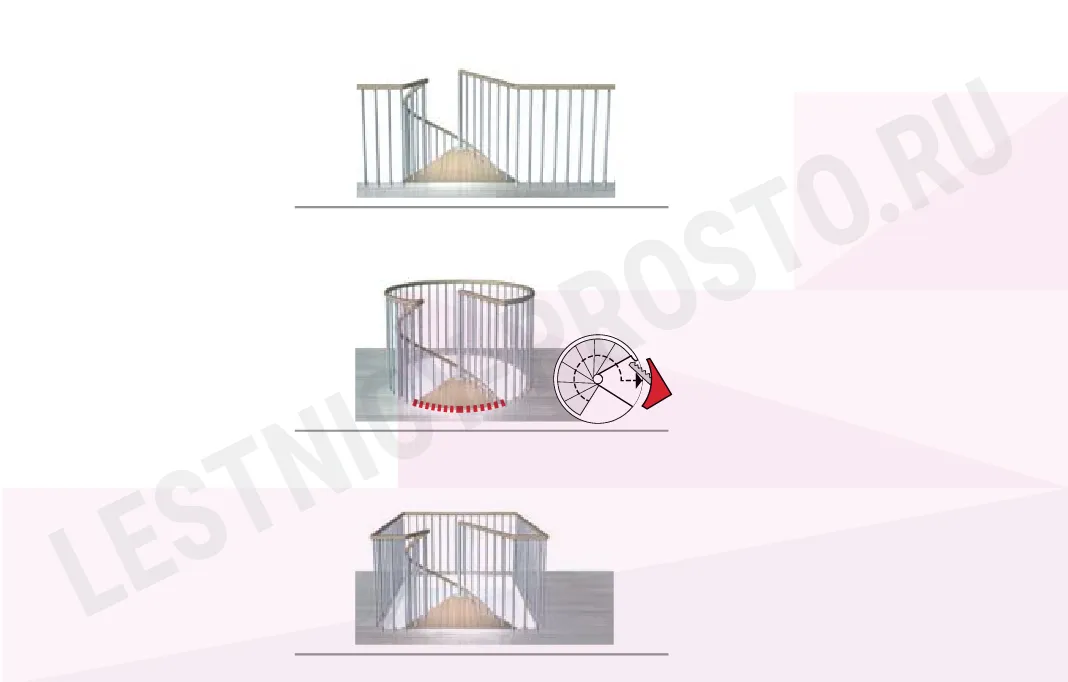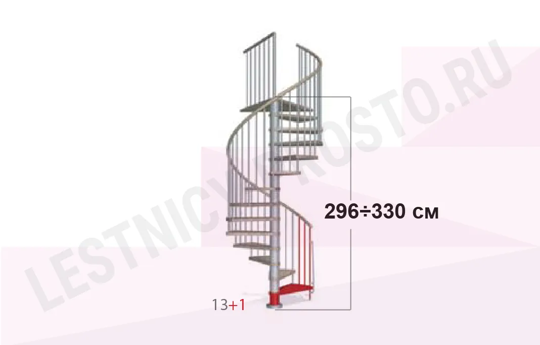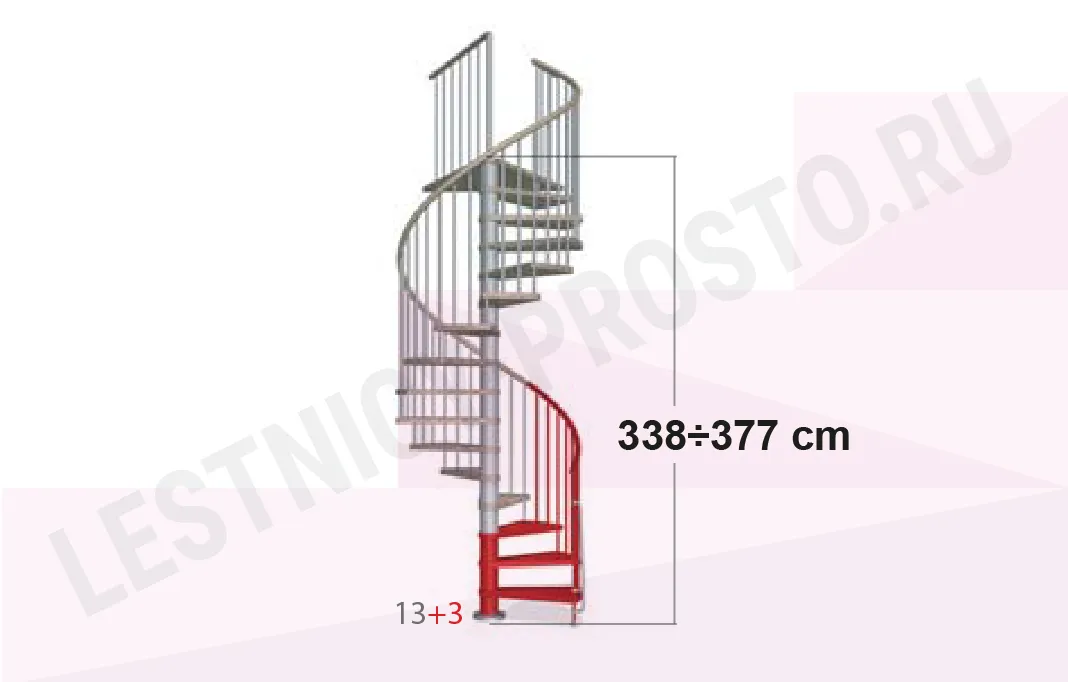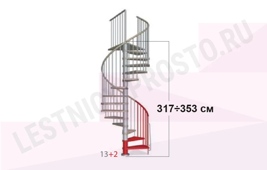 При монтаже лестницы, с помощью специальных пластиковых вставок, варьируется высота шага в пределах от 210 мм до 235 мм, за счёт чего общая высота лестницы может быть получена в пределах ;от 2530 мм до 3060 мм.