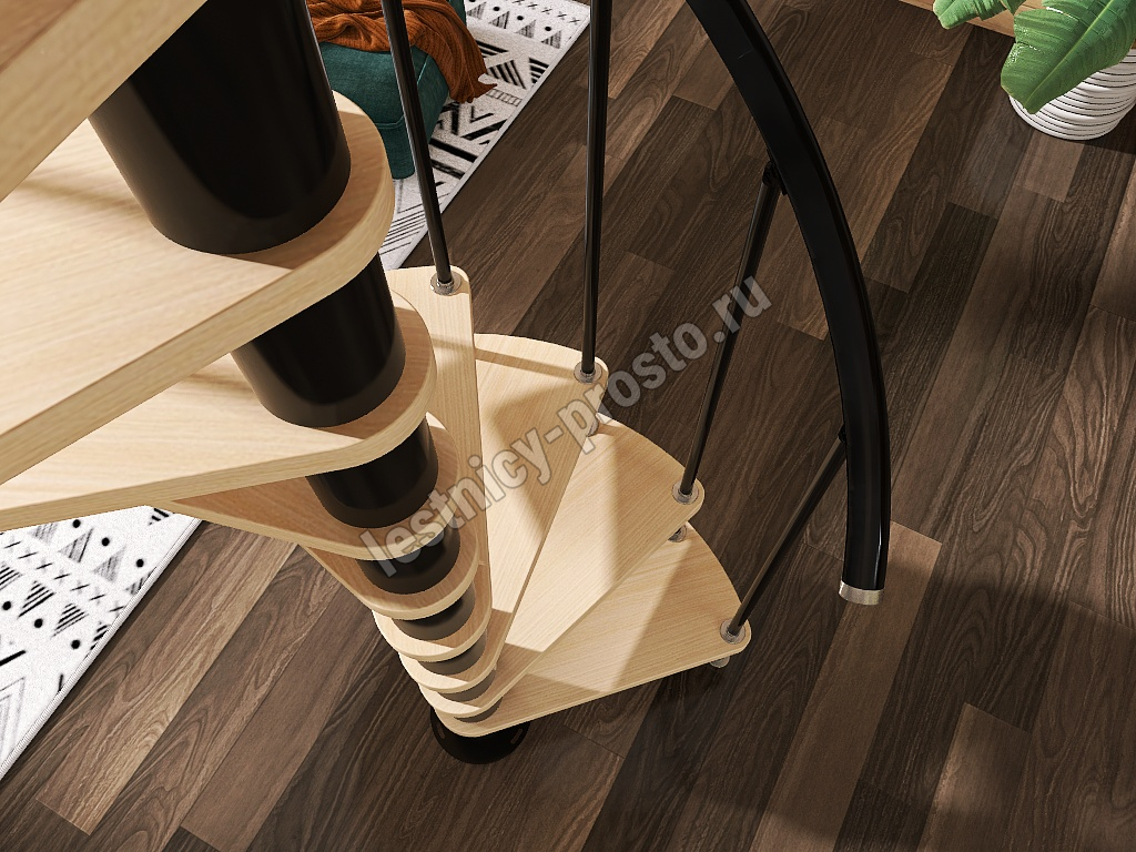 Винтовая лестница Prosto Spiral Black D140см, h260.5-304.6 см, бук