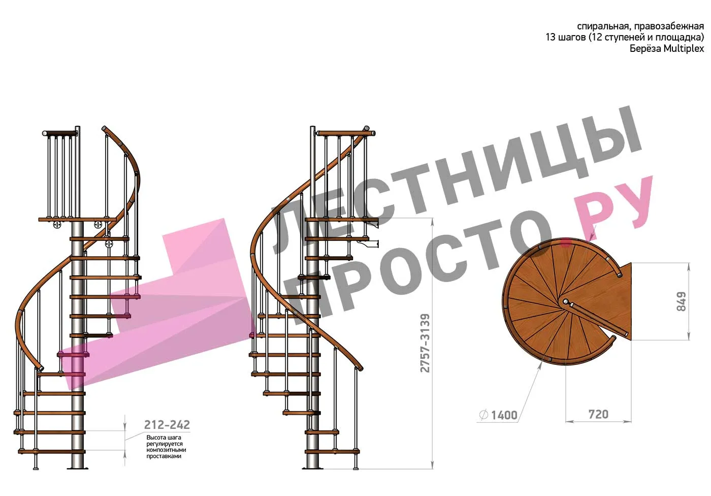 Высота ступеней регулируется с шагом 3 мм. в пределах 210-231 мм., благодаря чему, лестница прекрасно подгоняется под необходимую высоту.