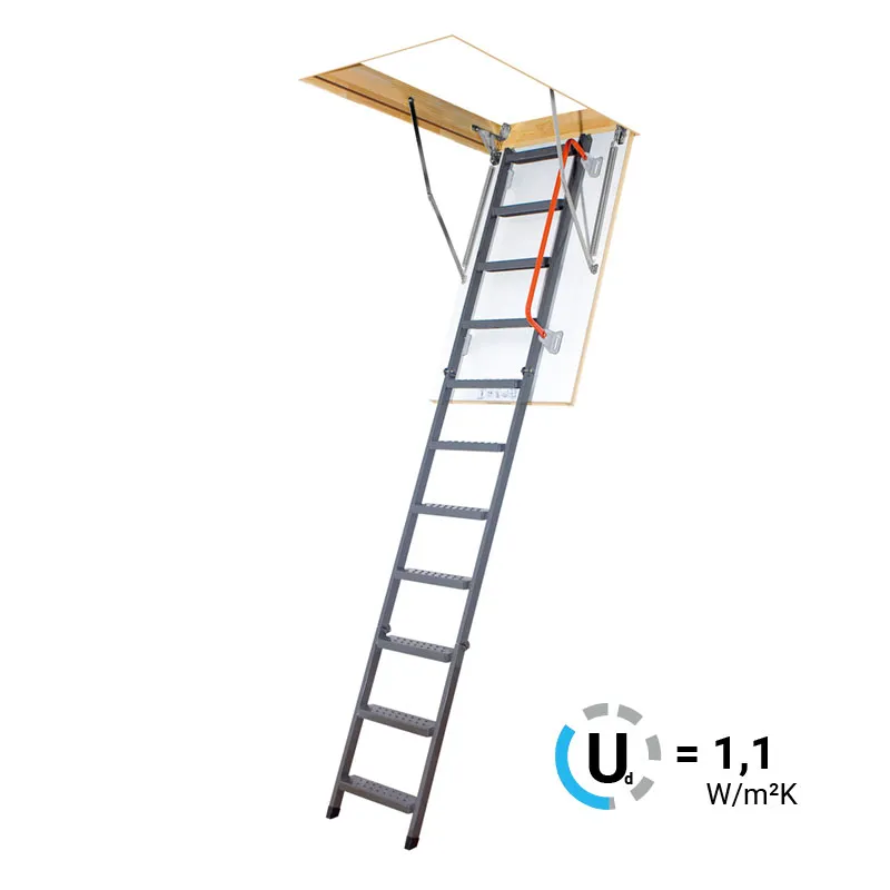 Экономит пространство. Высота ступеней регулируется с шагом 3 мм. в пределах 217-247 мм., благодаря чему, лестница прекрасно подгоняется под необходимую высоту.