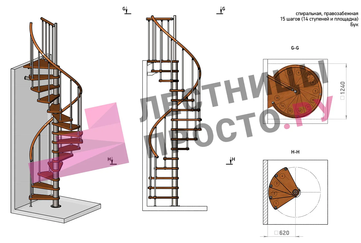 Винтовая лестница Prosto Spiral White D160см, h282.2-326,3 см, бук |