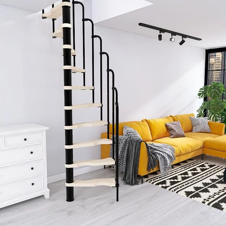 Отделка лестницы всегда в черном цвете. Перила из полиуретана с алюминиевым сердечником черного цвета, как и износостойкие нескользящие панели на ступенях.