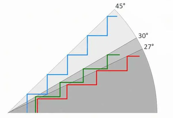 zakaz@lestnicy-prosto.ruУгол подъёма лестницы угол между горизонталью и линией хода, который зависит от ширины проступи и её высоты. Угол подъёма определяет комфортность и безопасность лестницы, наиболее удобными считаются модели с углом подъёма 30-40 градусов.